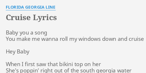 Florida georgia line cruise lyrics. Httpbitly127pvog music video by florida georgia line performing cruise remix. Baby you a song you make me wanna roll my windows down and cruise hey baby yeah when i first saw. Florida georgia line nelly cruise lyrics.