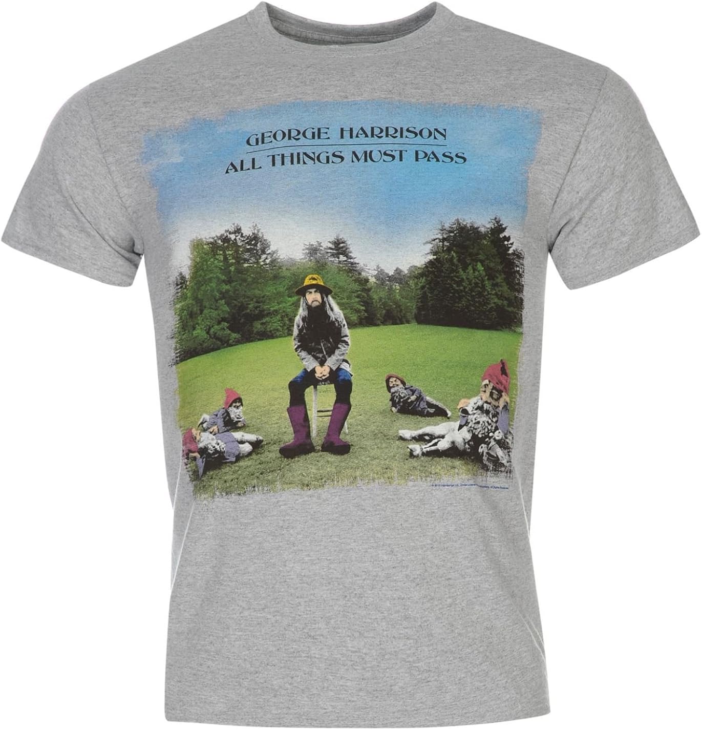 Skip to main content. The main complaint is that the color isnt as vivid as in t shirt postedno blue skiesor detailed gnomeseverything seems faded into the grey backgroundim not sure if just this batch wasnt printed clearlyor all where printed this waylove george harrisonbut cant reccommend this tee. More official george harrison t shirts and official beatles t shirts available in our other listings.