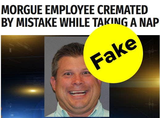 A website that describes is content as satirical is behind false reports that a funeral home home employee was accidentally cremated while taking a nap on a stretcher. Beaumont texas an employee of the jefferson county morgue died this morning after being accidentally cremated by one of his coworkers. A morgue worker was accidentally cremated while napping or pretending to be dead.