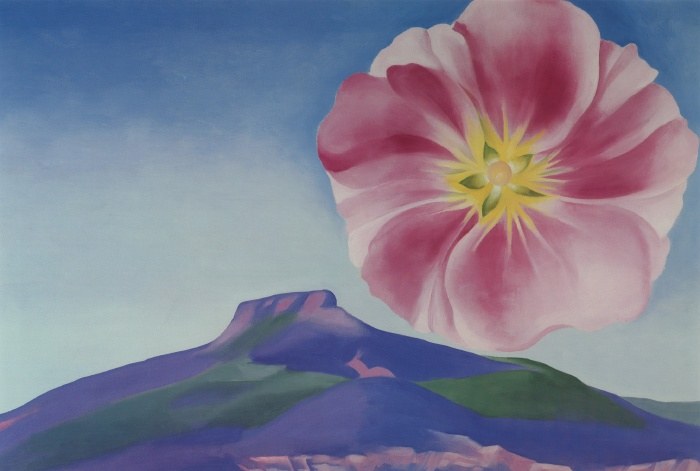 Red hills with flowers by georgia okeeffe. Music pink and blue no.