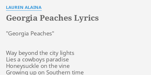 The song is an up tempo referring to attractive southern women as georgia peaches. 50 videos play all mix lauren alaina georgia peaches lyrics youtube lauren alaina georgia peaches official music video duration. Hunt down their albums you wont be disappointed.