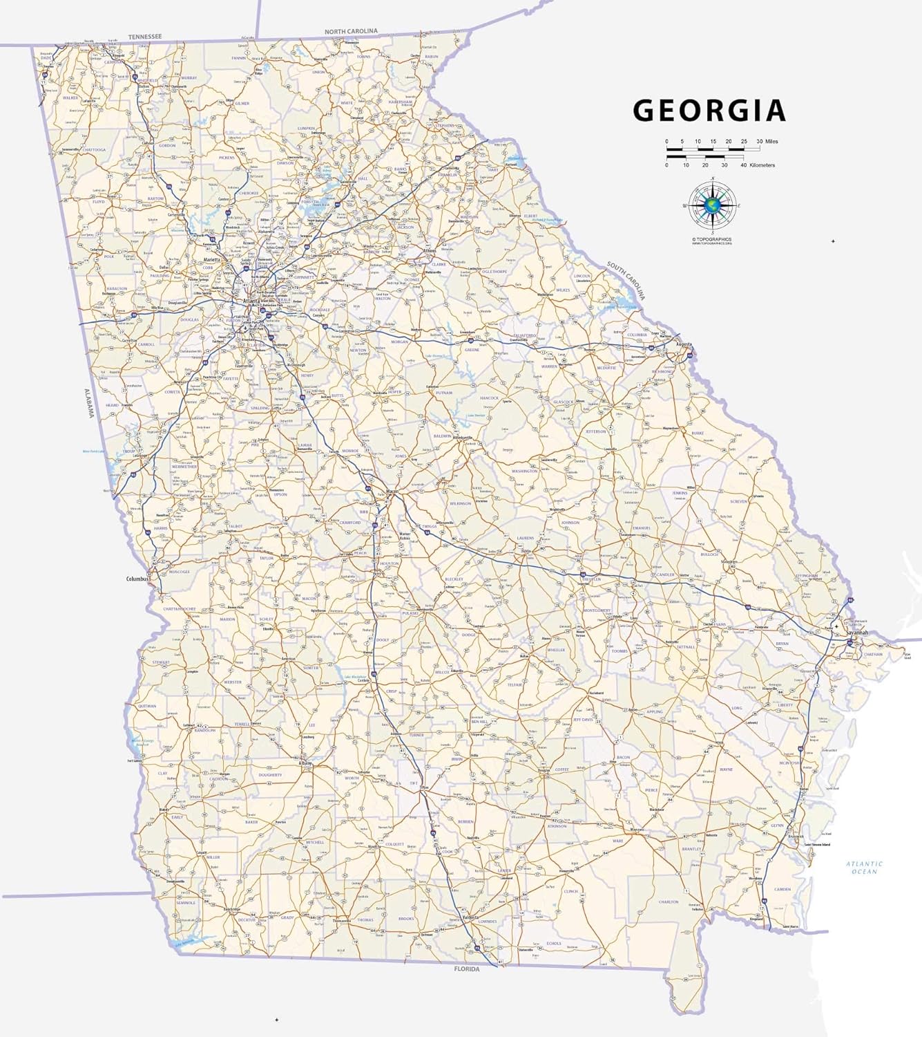 Map of georgia counties and highways. Go to historical atlas of georgia counties. Discover the beauty hidden in the maps. Interstate 16 and interstate 20.