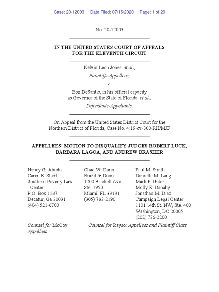 Jones V Desantis Motion To Disqualify Judicial Disqualification www.scribd.com