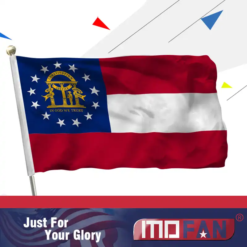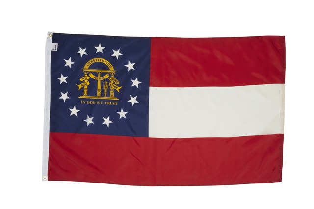 This became the georgia state flag in 2003. Anley fly breeze 3x5 foot georgia state polyester flag vivid color and uv fade resistant canvas header and double stitched state of georgia ga flags with brass grommets 3 x 5 ft. Four rows of stitching on the fly.
