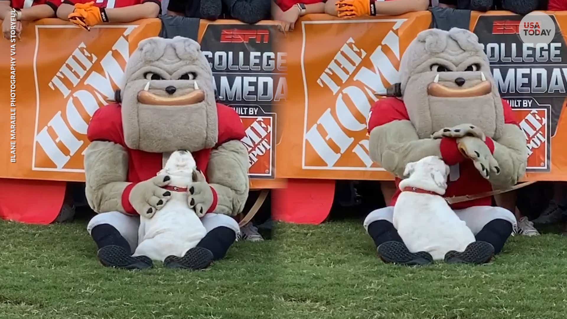 Bulldog Puppy Meets His Idol The University Of Georgia Bulldog Mascot Video The Dog People By Rover Com