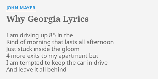 Why Georgia Lyrics By John Mayer I Am Driving Up www.flashlyrics.com